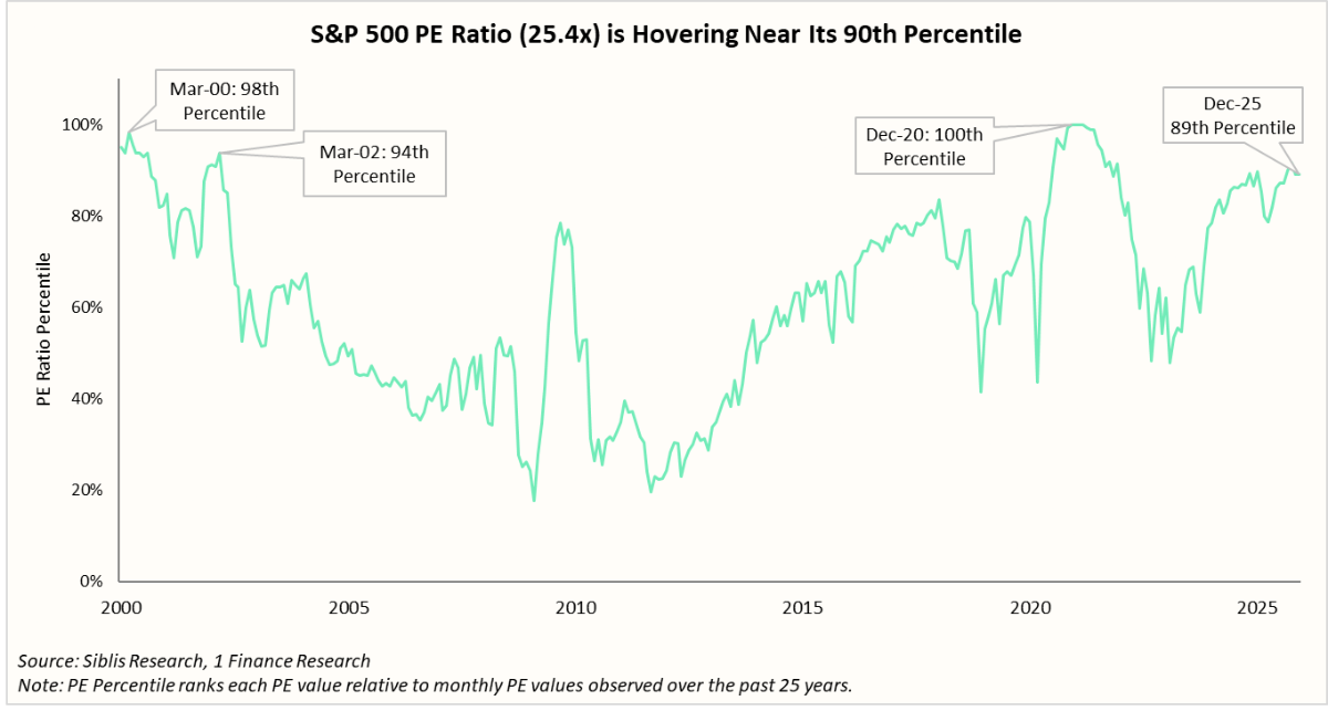 The S&P 500 closed 2025 with a PE Ratio of 25.4x, entering a zone where history begins to whisper caution.