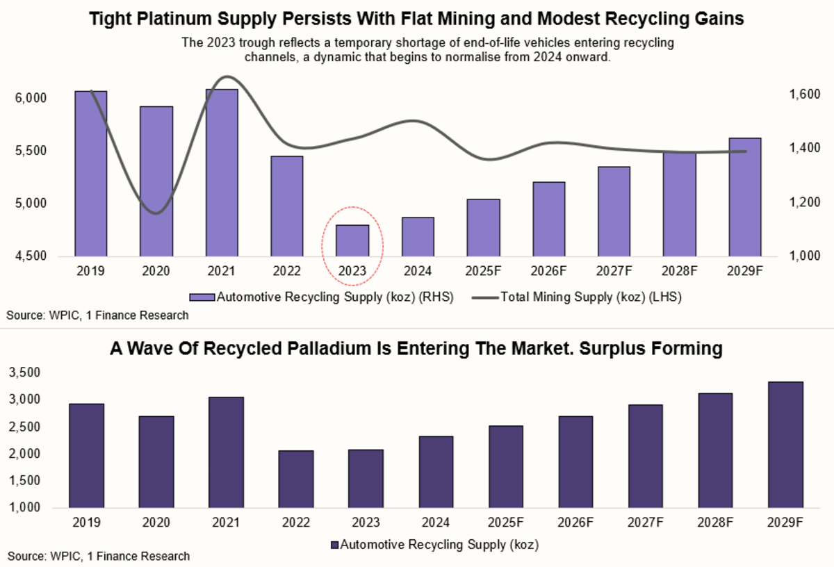 What this highlights is an important point for investors. Not all metals move together, even within the same family. Platinum and palladium are often grouped together, but their cycles can diverge meaningfully based on supply discipline, substitution trends, and end-use demand.