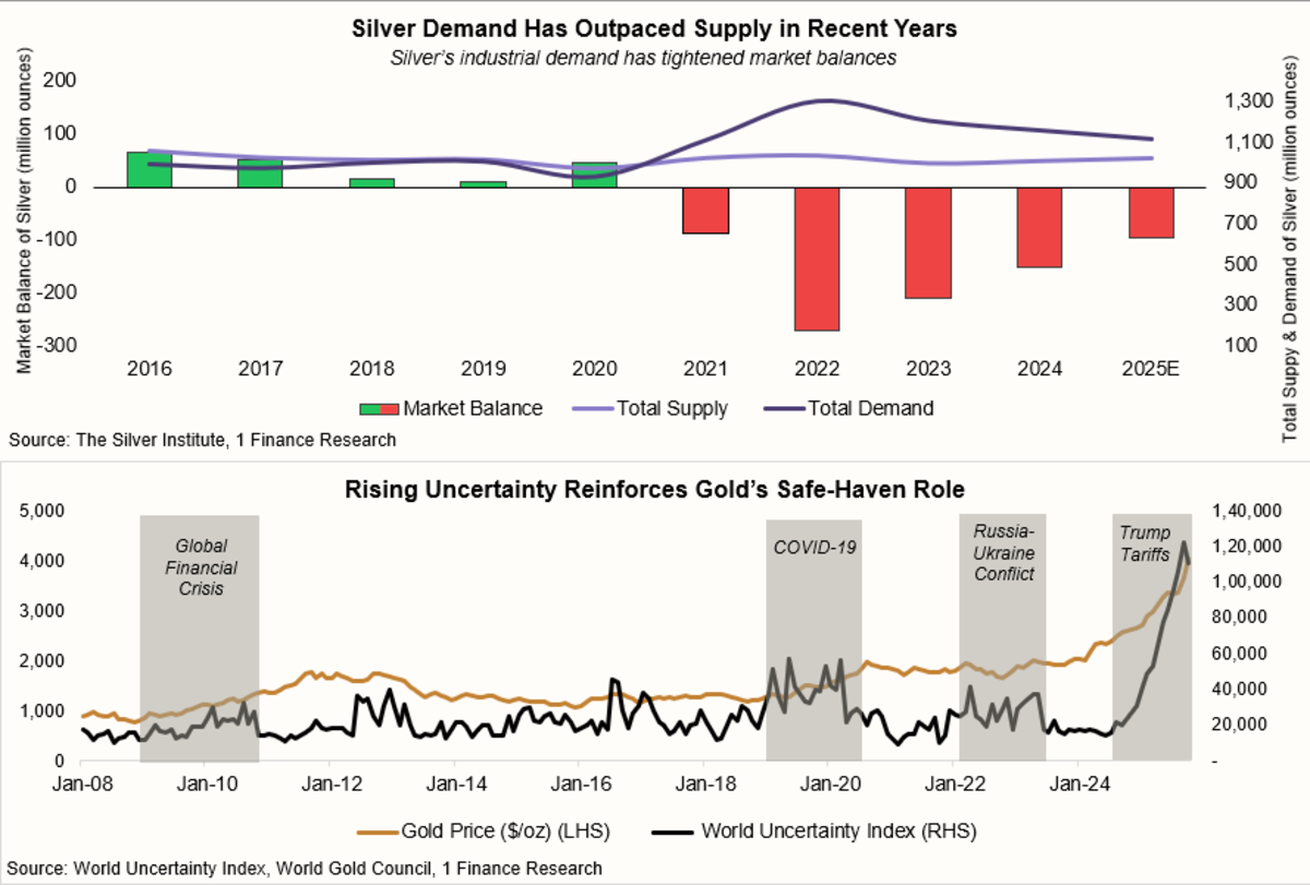 This wasn’t accidental. At the start of 2025, the macro setup was ideal for precious metals. Inflation risks were still present, real yields were falling, and global policy uncertainty remained elevated. Gold did exactly what it is meant to do in such phases: it protected purchasing power and stabilised portfolios.