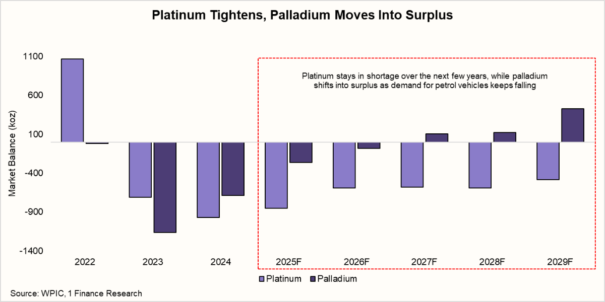 While gold and silver were driven largely by macro and monetary factors, platinum and palladium are entering 2026 with very different fundamentals. Their outlook is shaped less by interest rates and more by physical supply and demand.
