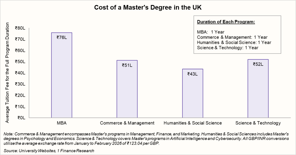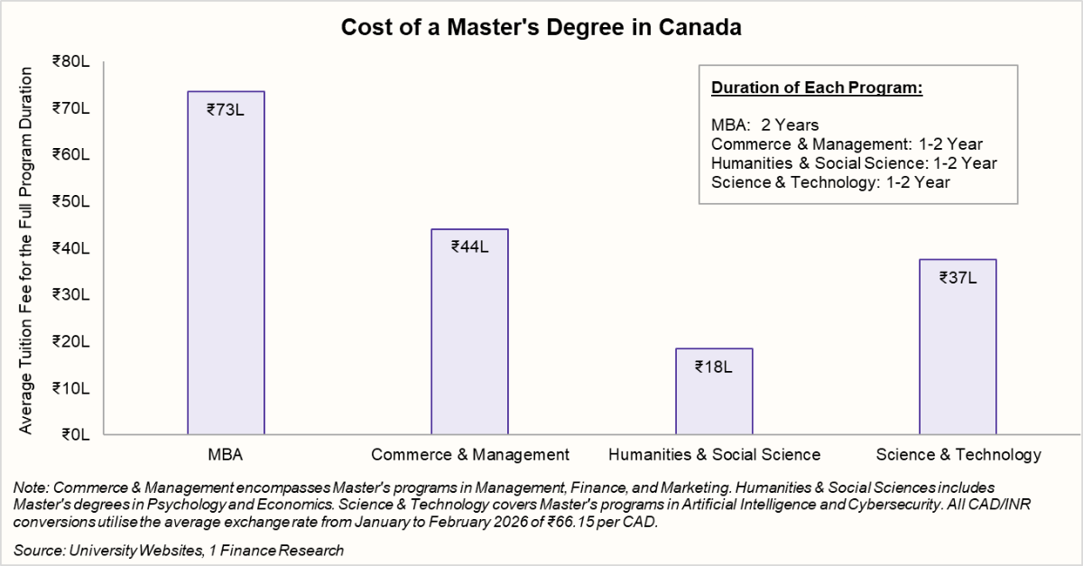 The U.S. continues to be the most expensive destination among the three. Tuition alone for an MBA can touch nearly ₹1.5 crore, while programs in science, management, and humanities typically fall in the ₹62-66 lakh range. And this is only the academic cost. Living expenses, insurance, and other essentials can add significantly to the total outlay.
