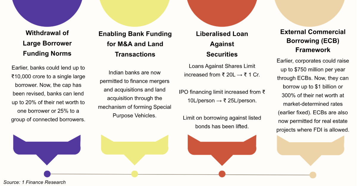 - ECBs can now fund real estate activities (commercial, logistics, annuity assets like roads). Overall, greater liquidity will support real estate and infrastructure assets.
