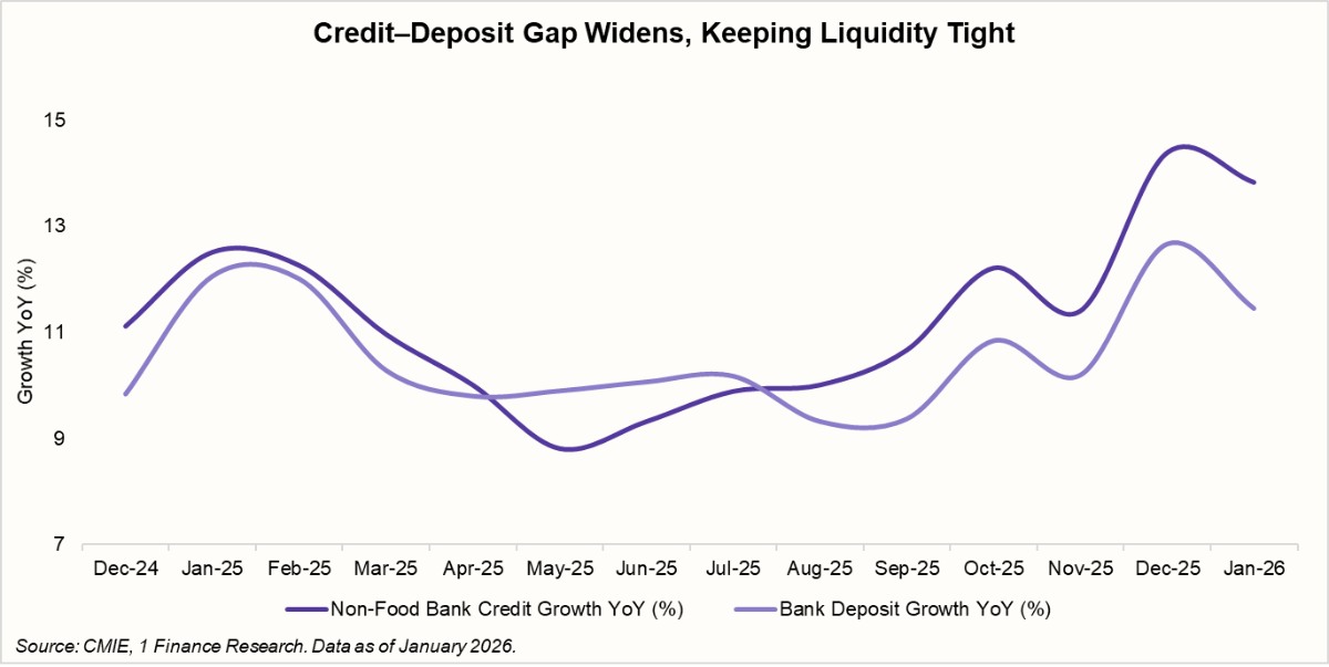 Second, liquidity remains uneven. Credit growth has been running ahead of deposit growth, widening the credit-deposit gap. This has kept system liquidity tight at the margin and increased banks’ reliance on market borrowing. In such an environment, a rate cut would not translate effectively into lower lending rates and could even intensify funding pressures.