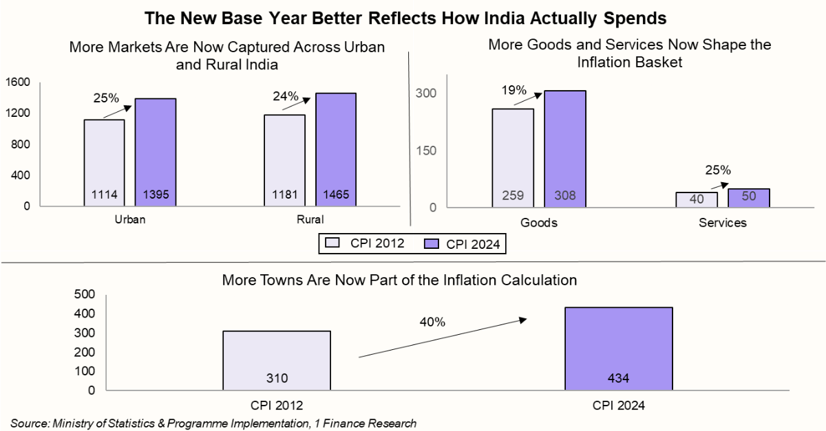 The way we measure prices just got a long-overdue upgrade. MoSPI has shifted the inflation base year from 2012 to 2024. This captures how India actually spends today.