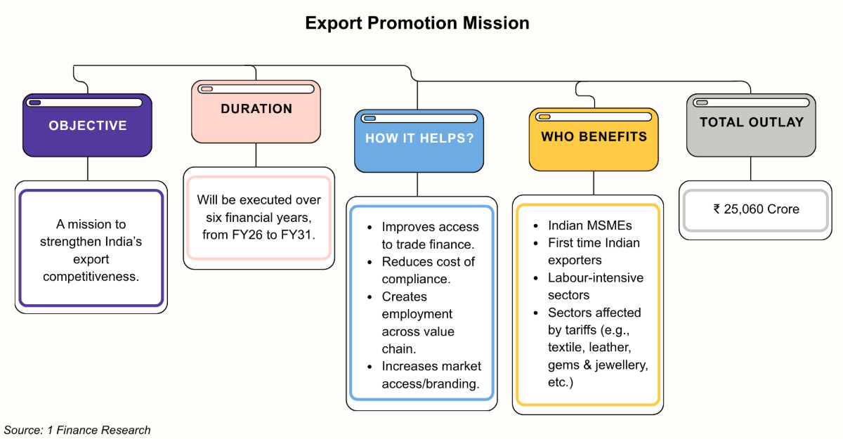 EPM is a ₹25,060 crore initiative with two goals. First, it tackles funding problems, giving MSMEs easier access to trade finance, which is a big relief. Second, it helps with non-financial challenges like branding, packaging, and global market access.